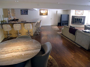 This family room is ideal for relaxing and entertaining. The elegant multi-level granite bar makes bartending a delight.